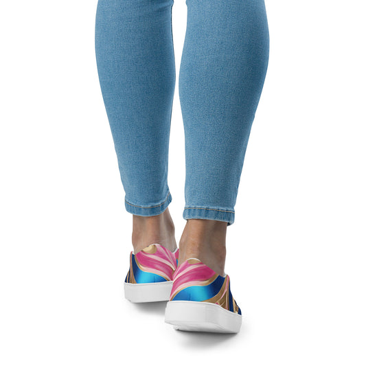 Chaitanya Abara Blue, Pink and Gold Abstract Print Women’s Slip-on Canvas Shoes