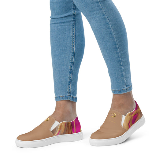 Chaitanya Abara Tan, Pink and Gold Abstract Print Women's Slip-on Canvas Shoes