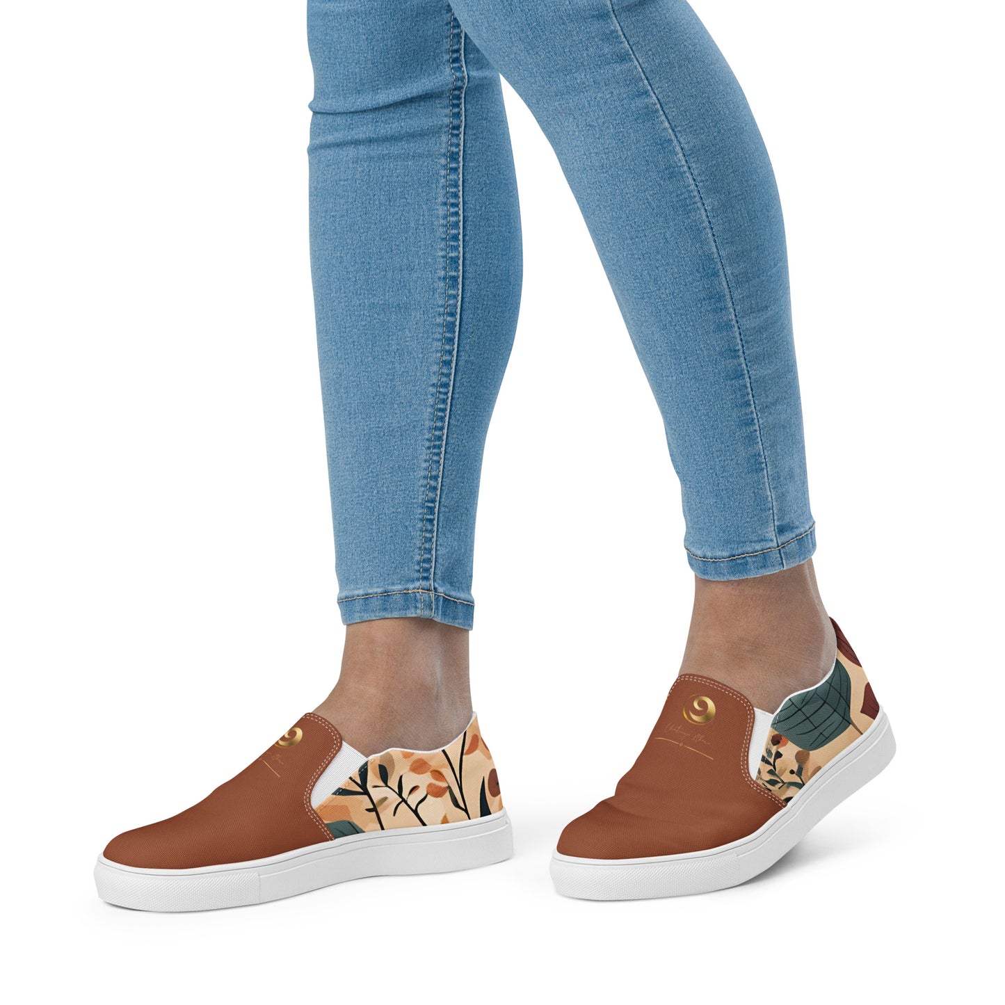 Burnt Orange Chaitanya Abara Fall Floral Women’s Slip-On Canvas Shoes