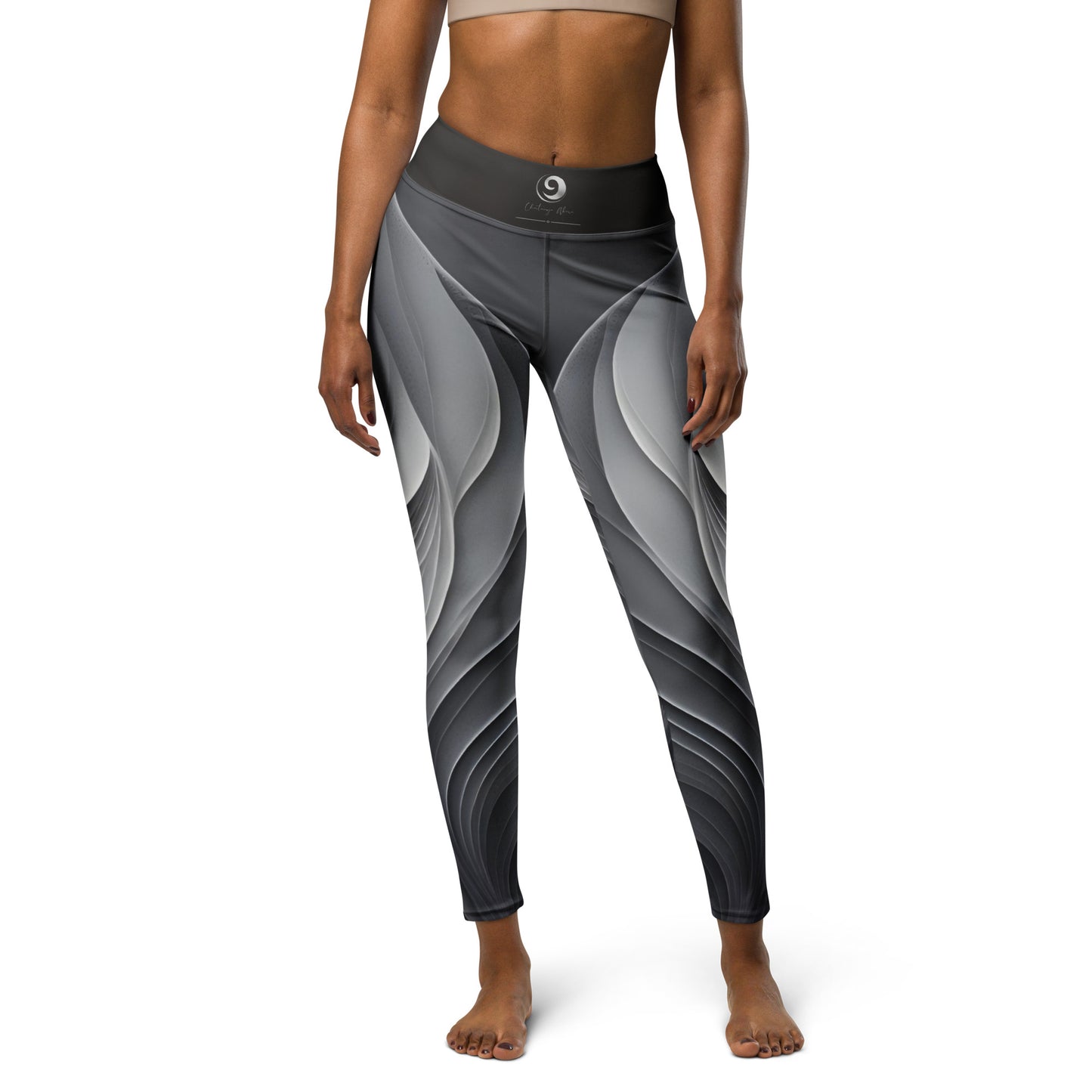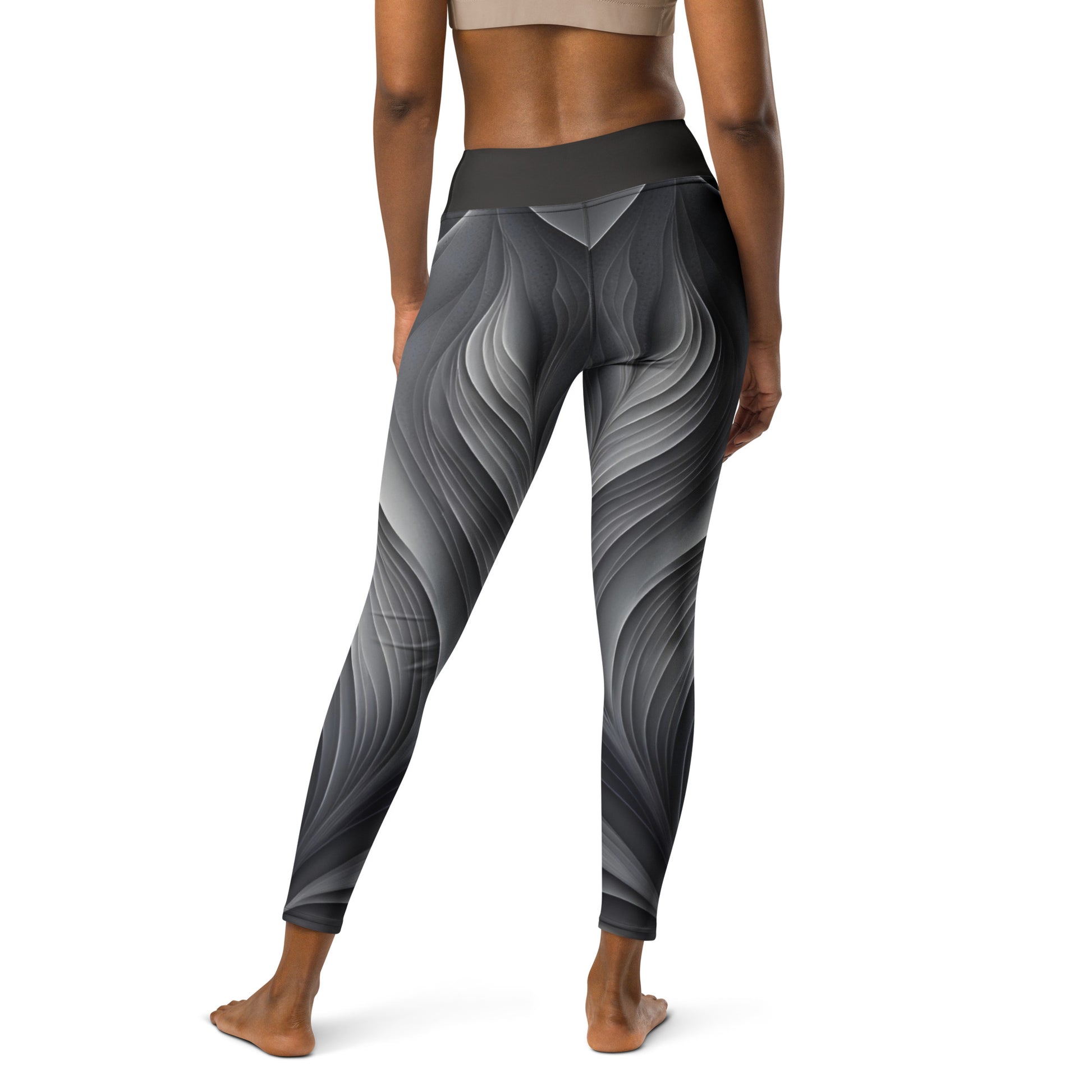 Chaitanya Abara Gray Leaf Pattern Yoga Leggings