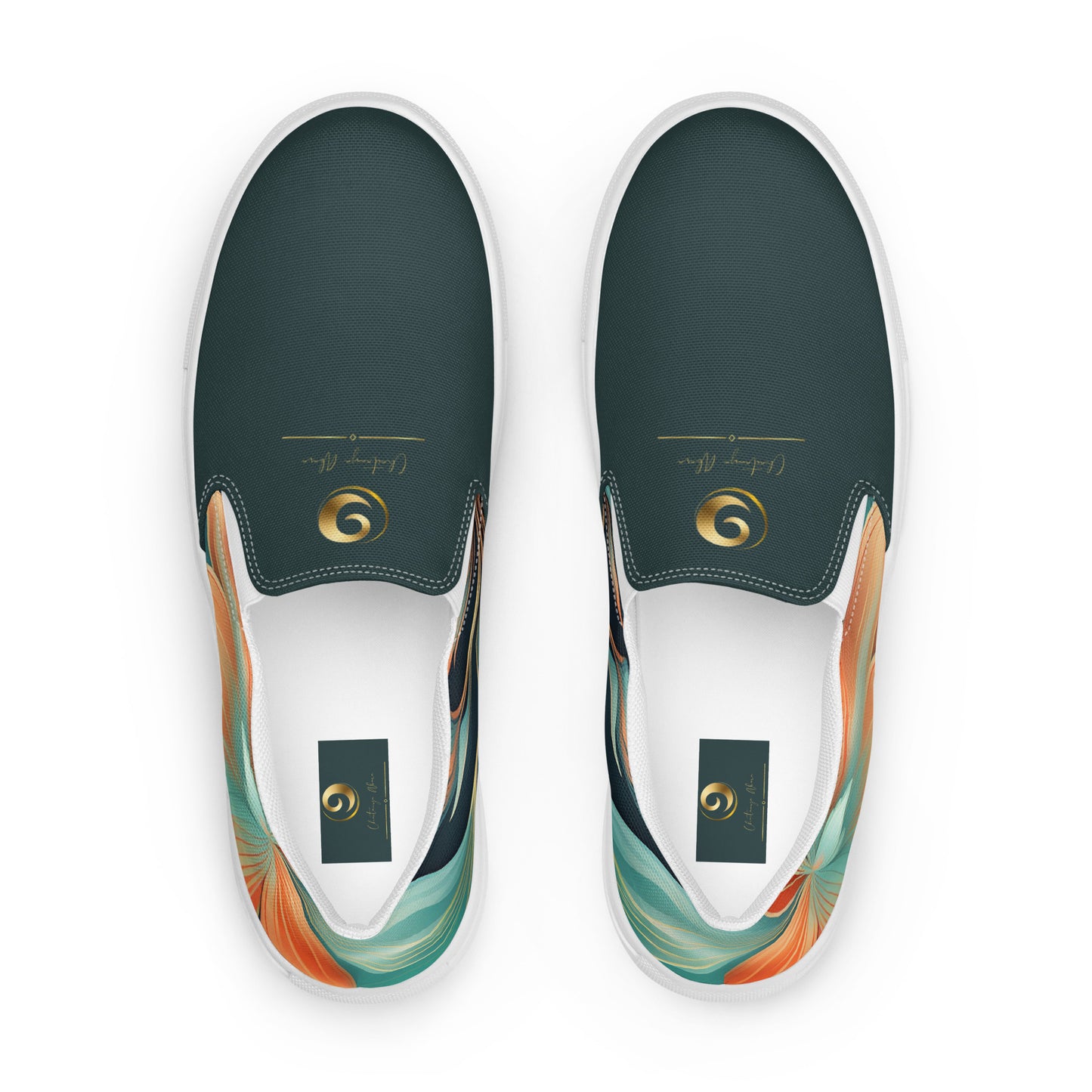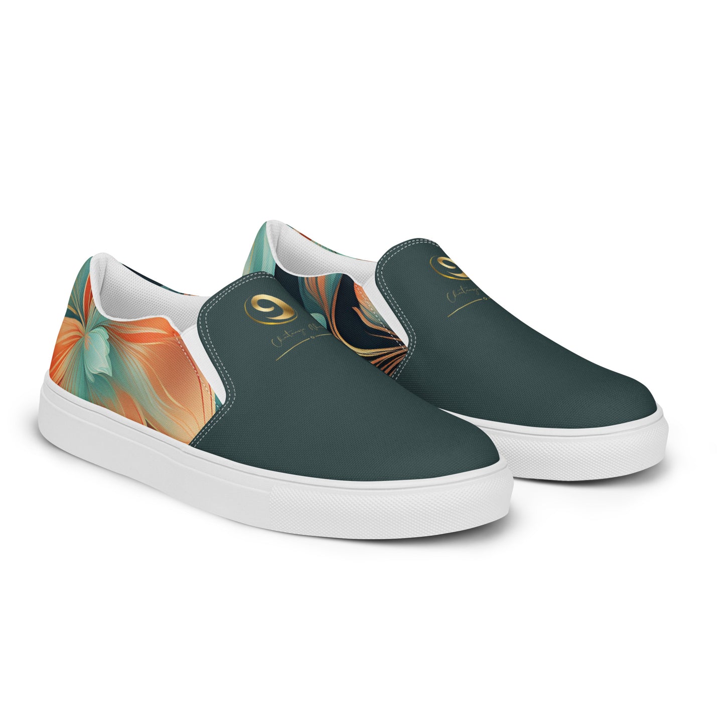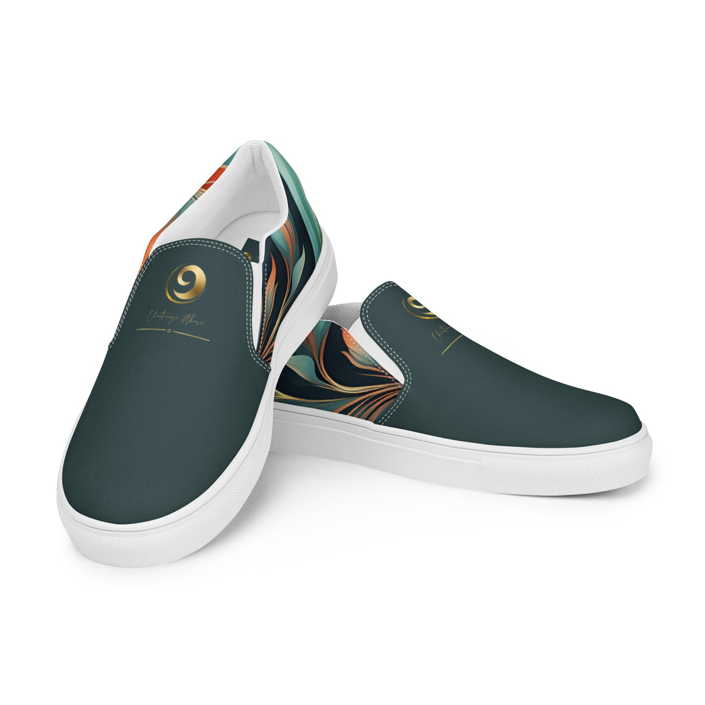 Chaitanya Abara Green with Orange Blossom Women’s Slip-On Canvas Shoes