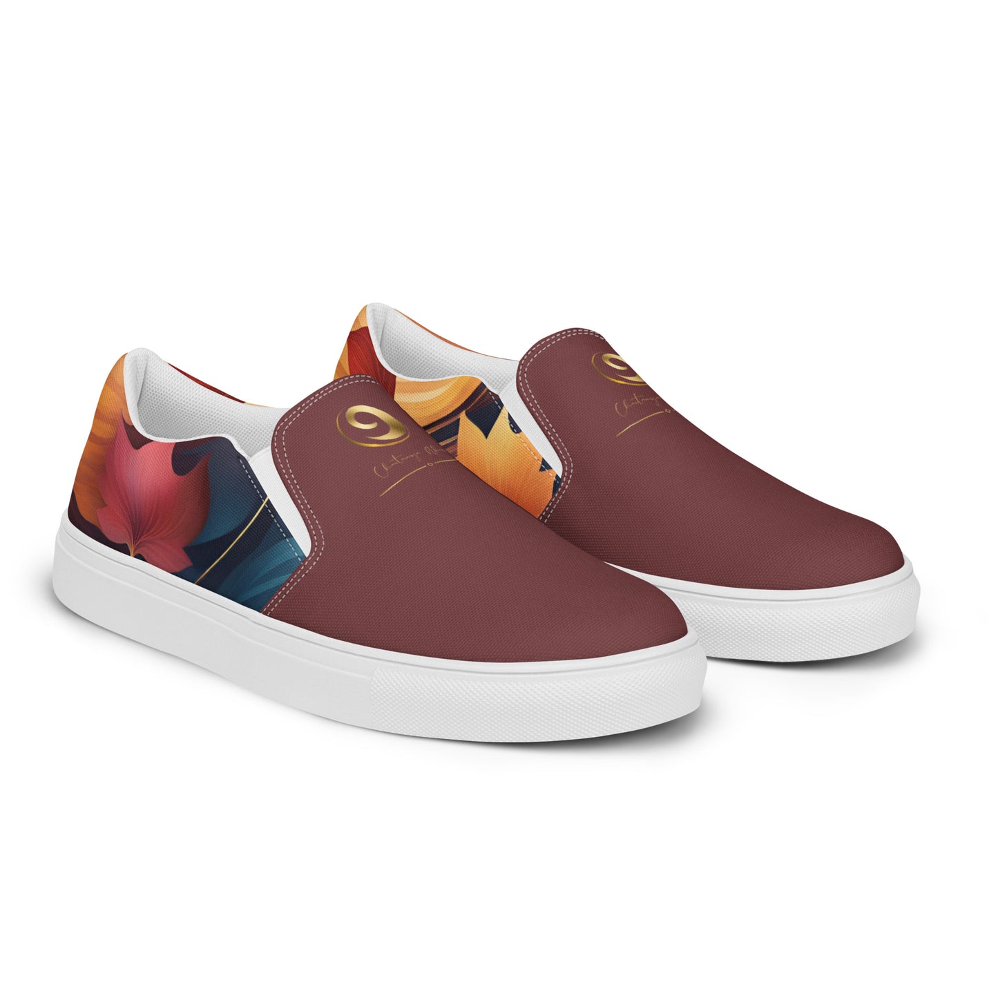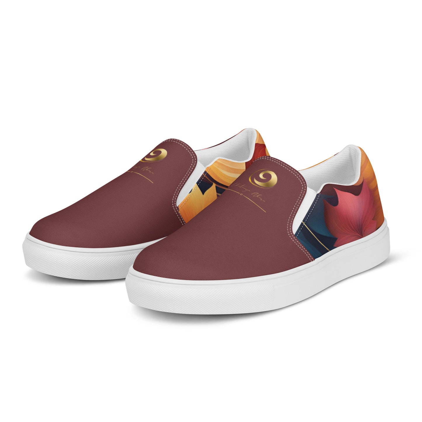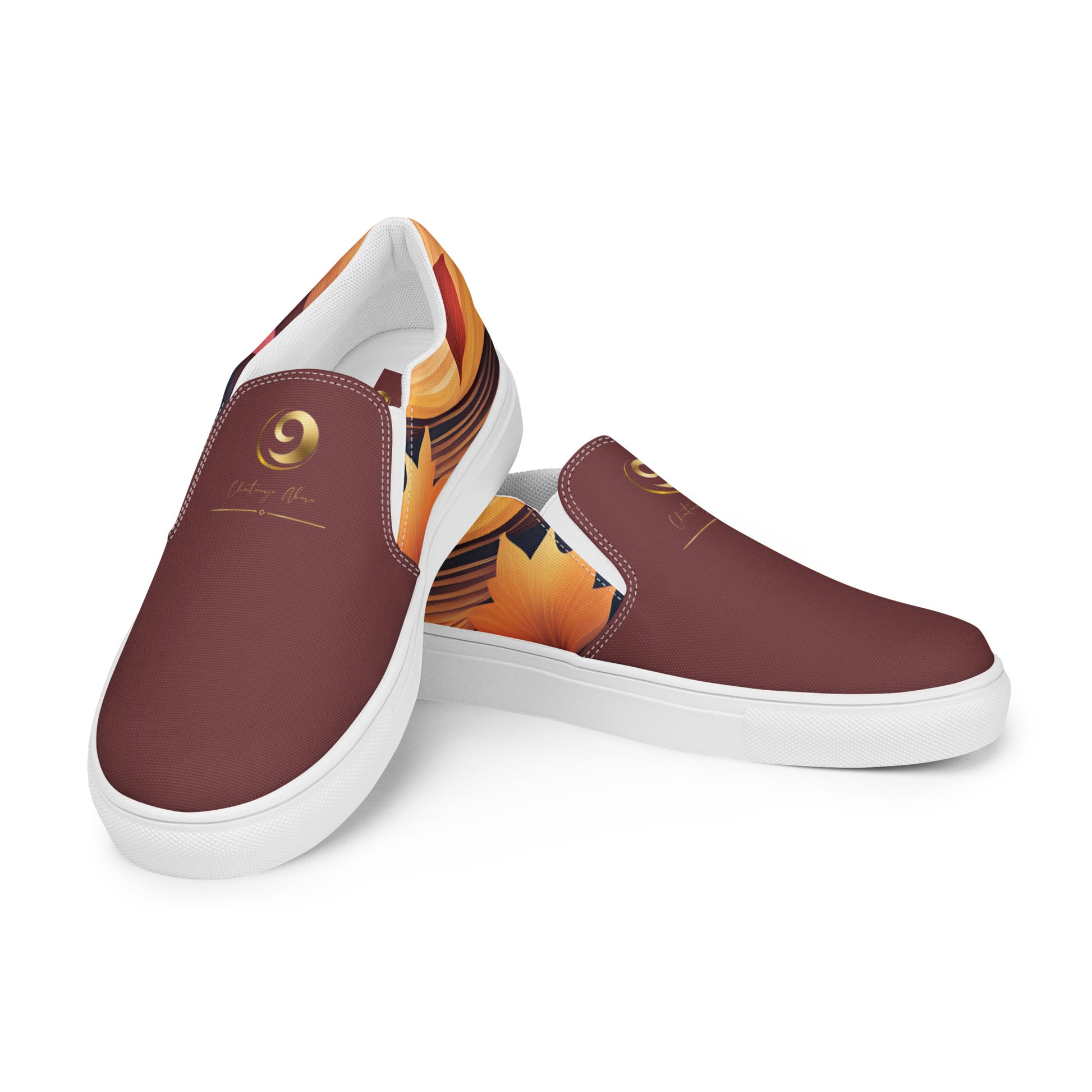 Chaitanya Abara Maroon Fall Floral Print Women’s Slip-On Canvas Shoes