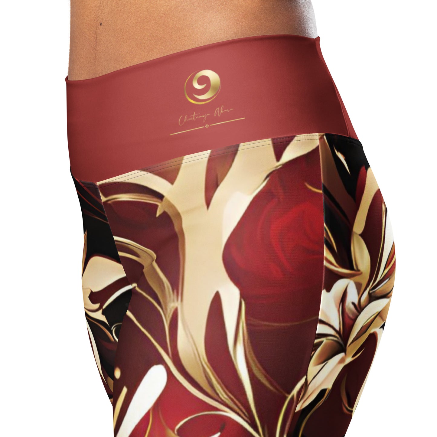 Chaitanya Abara Red, Maroon and Gold Abstract Floral Flare leggings