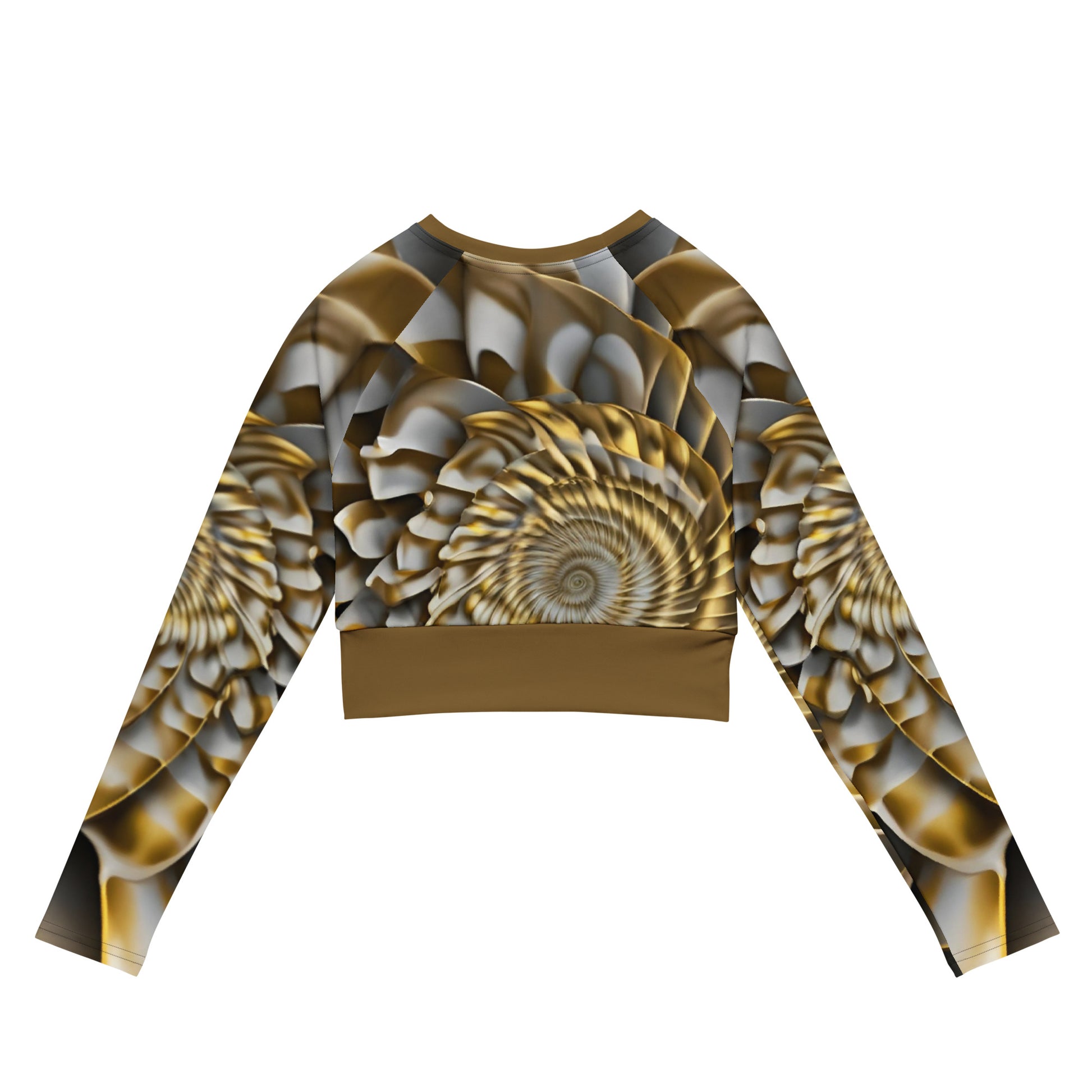Chaitanya Abara White and Gold Fibonacci Recycled Long-Sleeve Crop Top