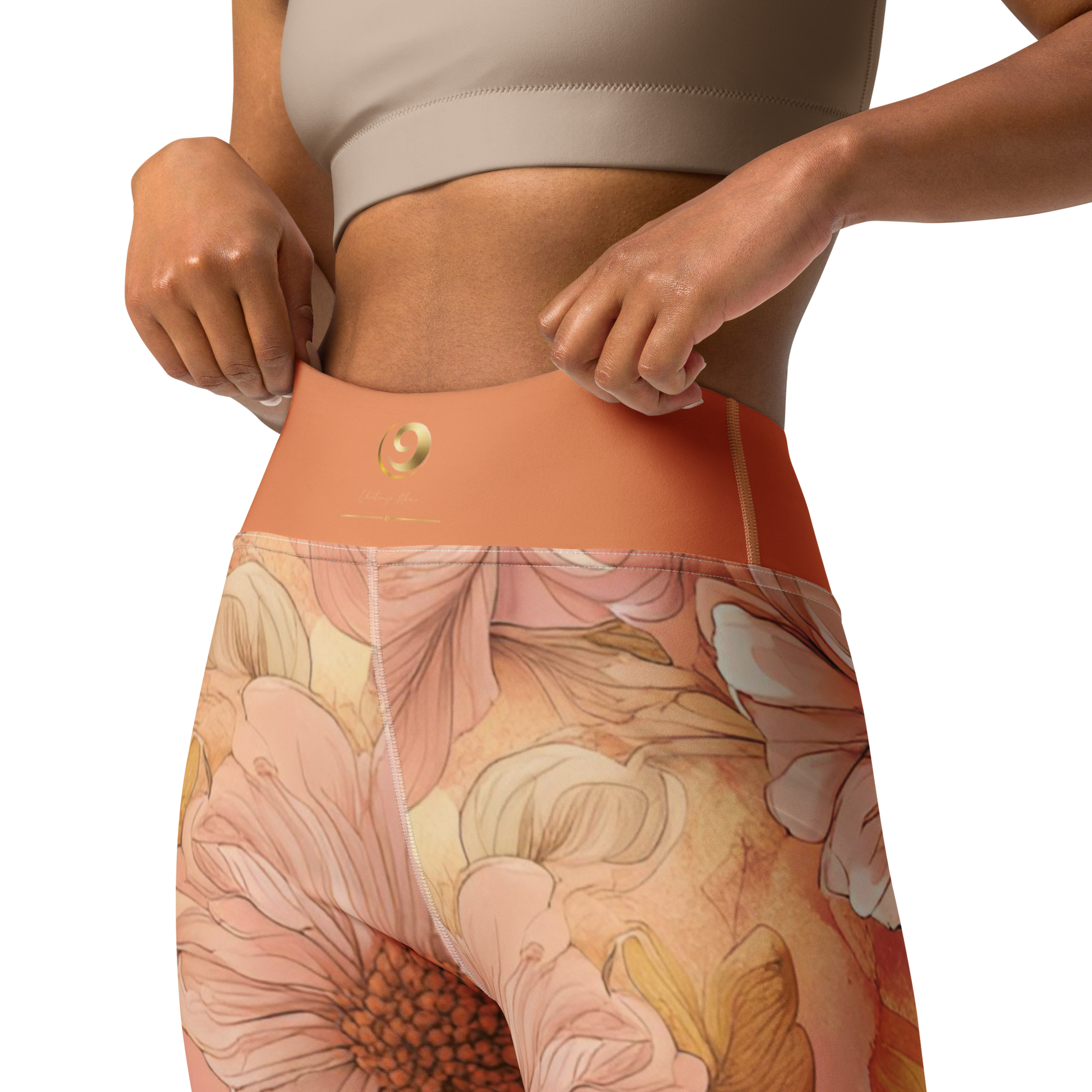 Chaitanya Abara Sunset Orange and Pink Floral Pattern Yoga Leggings