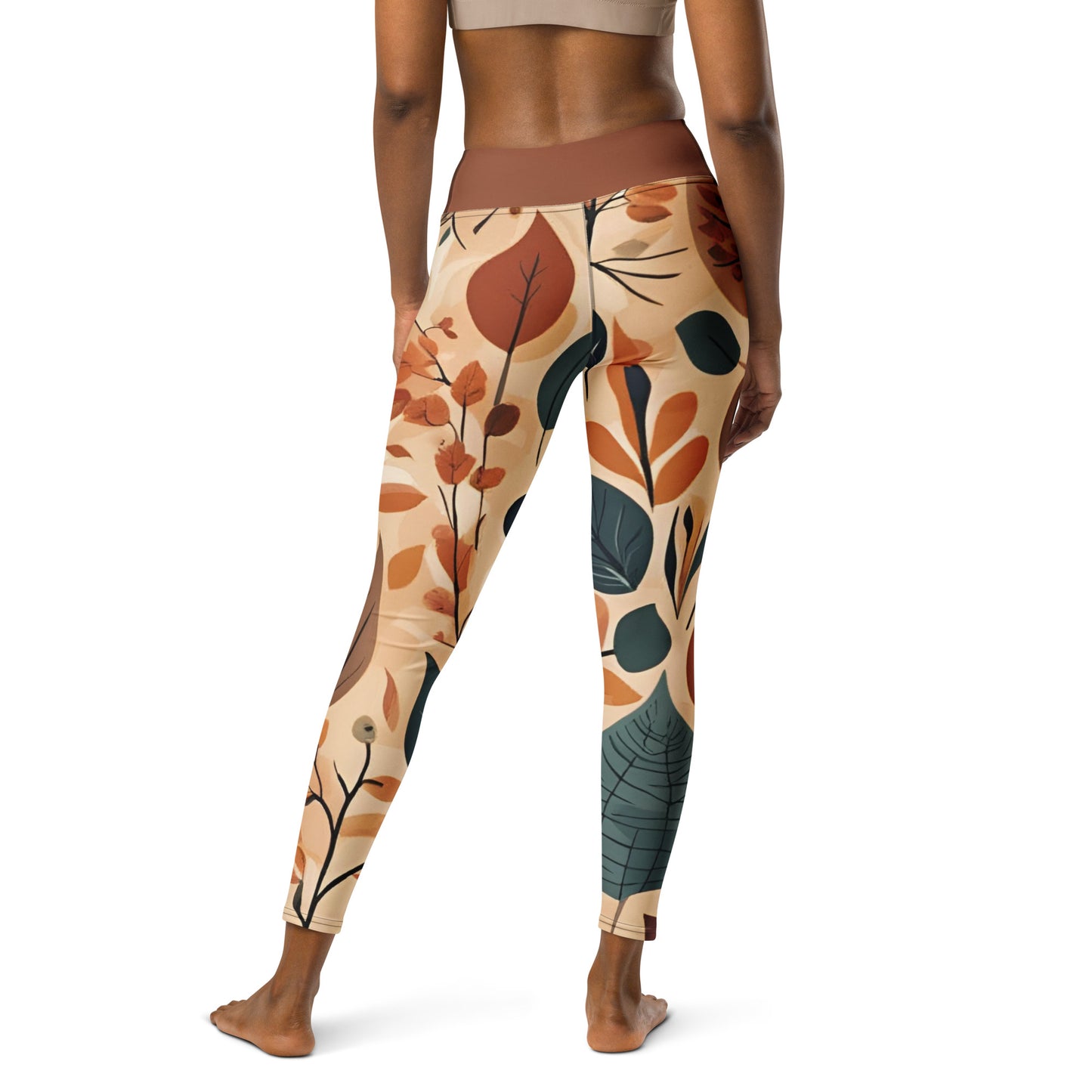 Tan Chaitanya Abara Fall Floral Print Yoga Leggings w Burnt Orange Band