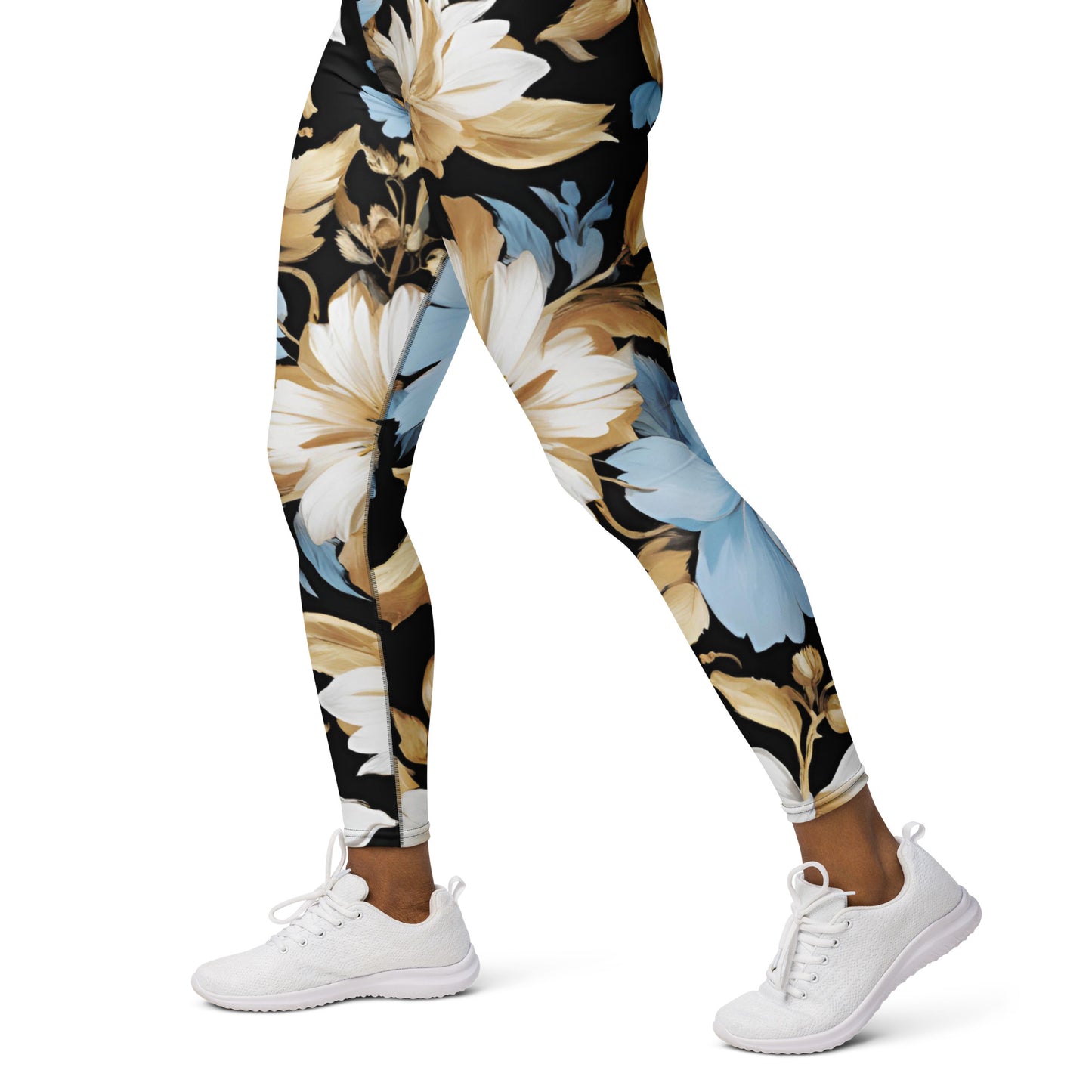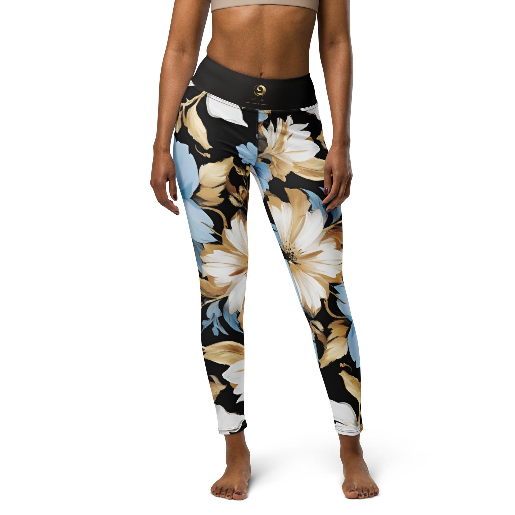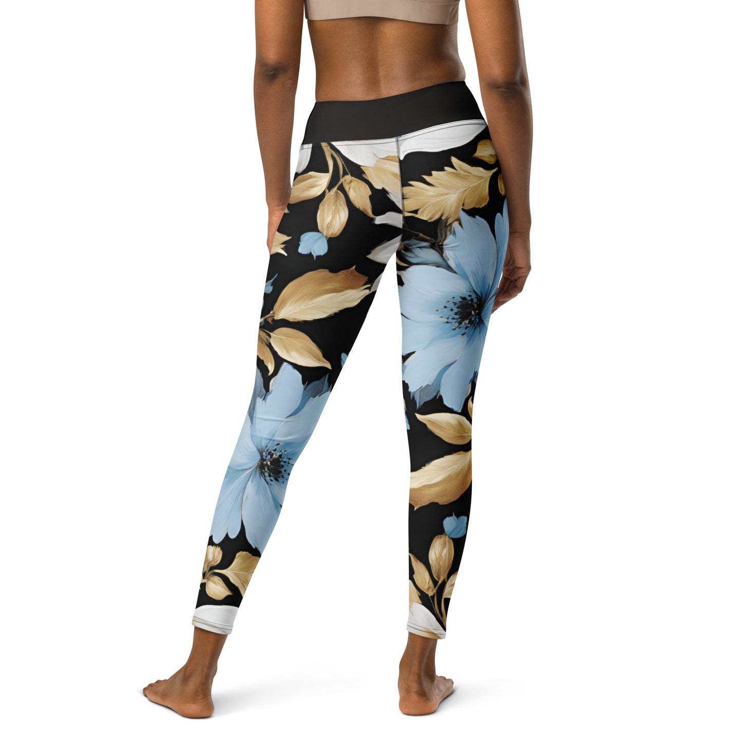 White, Sky Blue and Black Chaitanya Abara Floral Print Yoga Leggings